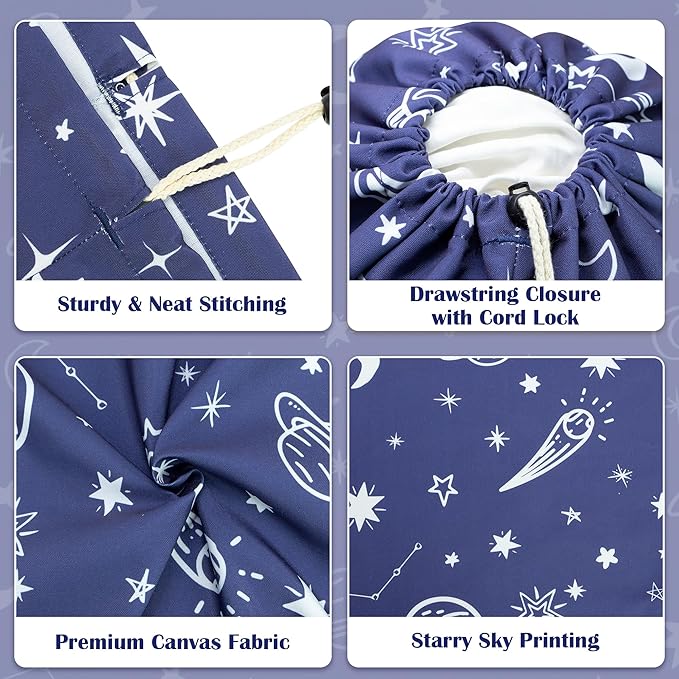 Canvas Laundry Bag with shoulder Strap 24" x 29", Large Drawstring Dirty Clothes Bag Washable Laundry Sack for College Dorm, Travel, Home, Camp (Space)