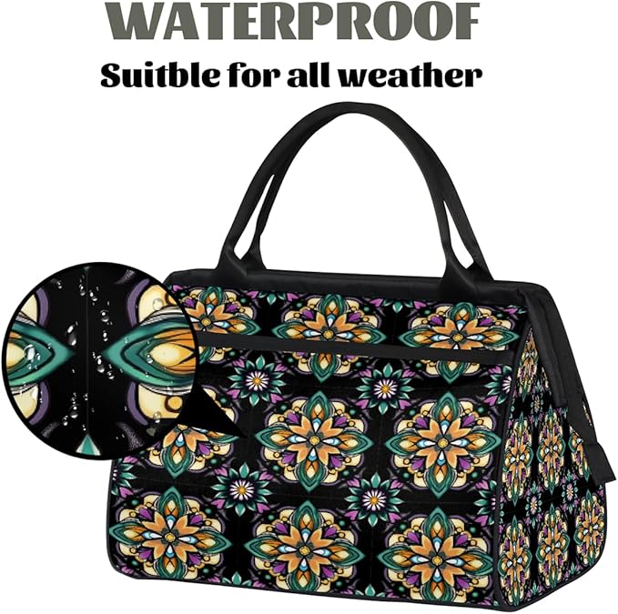 Large Travel Duffle Bag for Women Men,Waterproof Weekender Overnight Bag Carry on Tote Bags for Gym Sport Business Trip,Mexican Floral Tile Duffel Bags