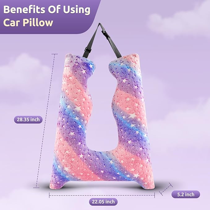 Car Pillow for Kids, Travel Pillow with Adjustable Strap, U-Shaped Pillow for Adults and Children to Support Head and Body Road Trip Essentials (Multicolor)