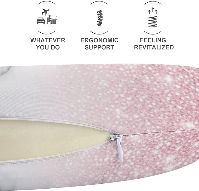 Teens Neck Pillow U-Shaped Memory Foam Travel Support, Modern Rose Gold Pink Glitter White Marble U-Shape, Washable Airplane Car Office Pillow