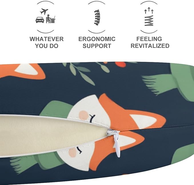 Memory Foam U-Shaped Travel Pillow Neck Pain Relief, Cute Fox U-Shape, Removable Cover Airplane Car Office