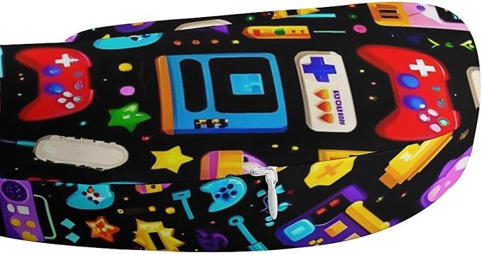 Memory Foam U-Shaped Travel Pillow Neck Pain Relief, Game Video Gaming Pattern White U-Shape, Removable Cover Airplane Car Office