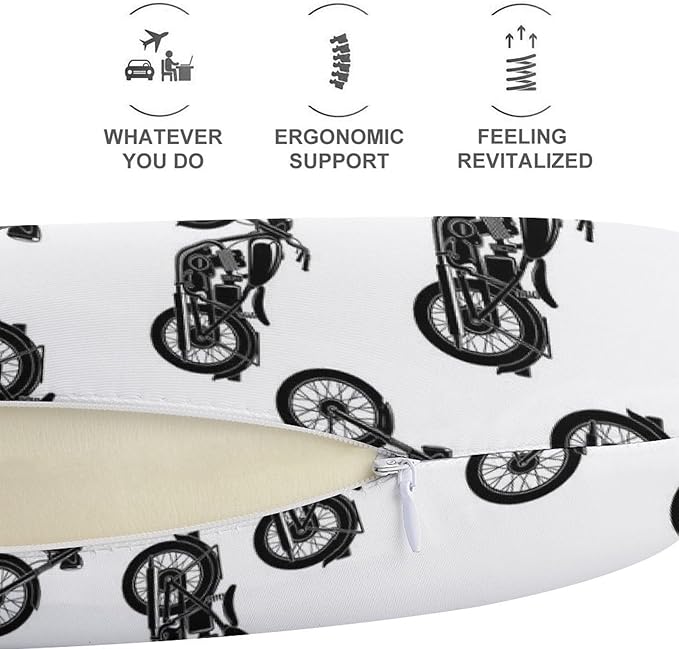 Memory Foam U-Shaped Travel Pillow Neck Pain Relief, Cool Crazy Antique Motorcycle Pattern U-Shape, Removable Cover Airplane Car Office