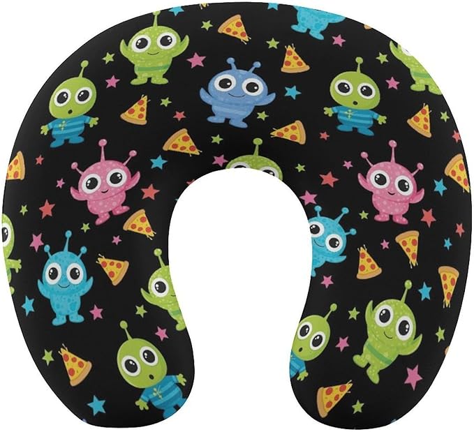 Portable U-Shaped Travel Pillow Memory Foam Neck Rest, Alien Eating Pizza Peace Funny Space Art U-Shape, Airplane Car Bus Office Chin Support