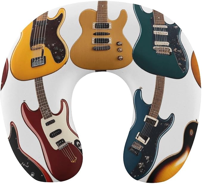 Memory Foam U-Shape Travel Pillow, Electric Guitar U-Shaped, Neck Support Compact for Airplane Bus Rest, Washable Cover Breathable