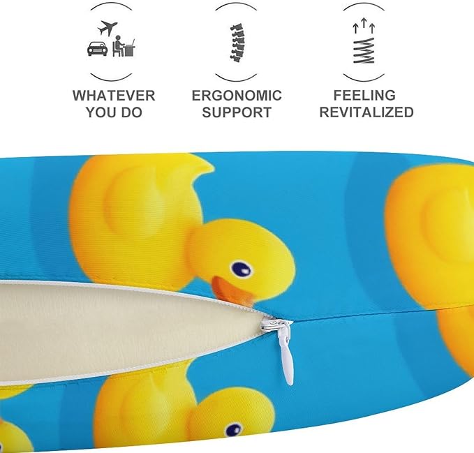 Breathable U-Shaped Neck Pillow Memory Foam Travel, Cute Funny Rubber Duck Yellow Ducky Blue U-Shape, Machine Washable Support Home Office