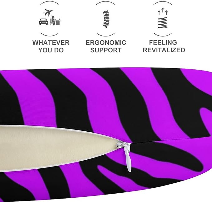 Memory Foam U-Shape Travel Pillow, Animal Purple Tiger Stripes Art U-Shaped, Neck Support Compact for Airplane Bus Rest, Washable Cover Breathable