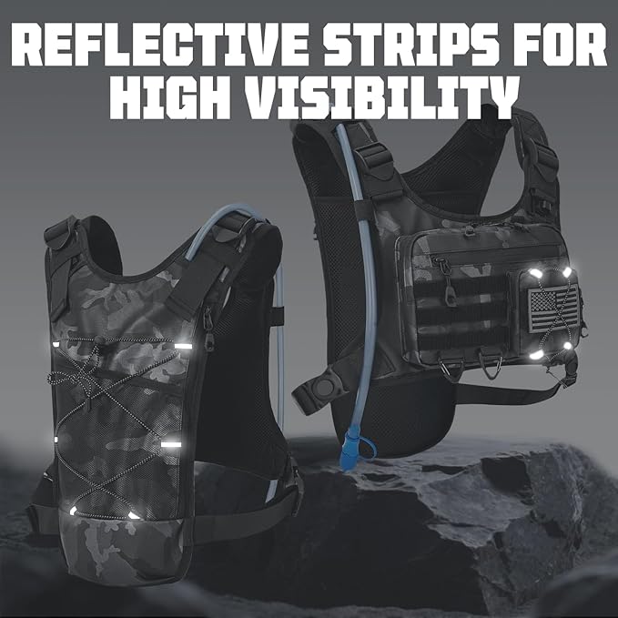 Hydration Vest with 2L Water Bladder for Men and Women,Lightweight Adjustable Hydration Backpack,Reflective Running Vest Chest Bag for Climbing Cycling Hiking
