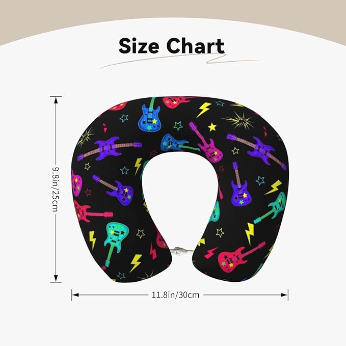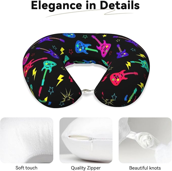Breathable Neck Pillow for Sleeping Rest Nap Trippy Neon Electric Guitars, Airplanes/Car/Home Memory Foam Travel Cushion with Polyester Cover Washable for Women Men