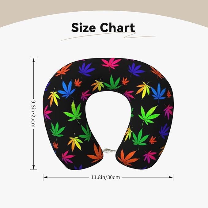 Neck Pillow Memory Foam Chin Cushion with Breathable Cover Trippy Neon Weedleaf Leaves, Cute Airplane Car Pillows for Office Head Pain Relief