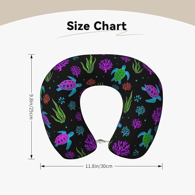 Neck Support Pillow, Comfortable Memory Foam Car/Flight/Airplane Chin Pillows U Shaped Cushion for Office Travel Sleeping Trippy Watercolor Blue Sea Turle