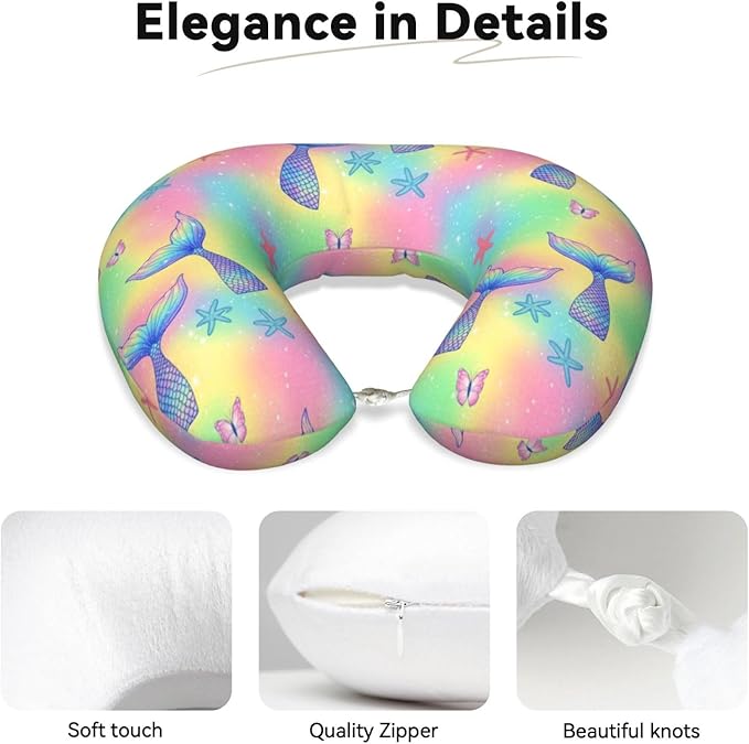 Neck Pillow Memory Foam Chin Cushion with Breathable Cover Magic Glitter Pink Mermaid Tail, Cute Airplane Car Pillows for Office Head Pain Relief