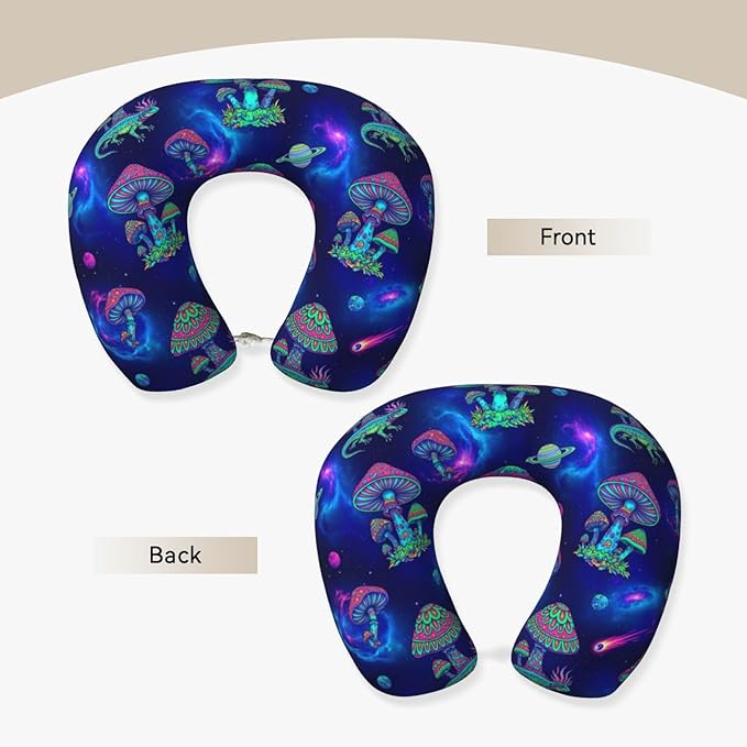 Neck Pillow Memory Foam Chin Cushion with Breathable Cover Trippy Mushrooms, Cute Airplane Car Pillows for Office Head Pain Relief