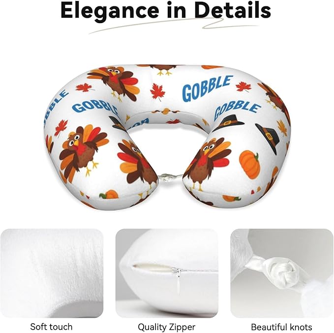 Breathable Neck Pillow for Sleeping Rest Nap Thanksgiving Funny Turkey, Airplanes/Car/Home Memory Foam Travel Cushion with Polyester Cover Washable for Women Men