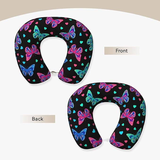 Travel Pillow for Men Women, Washable Relax U Shaped Neck Pillows for Car Head Pain Relief Sleeping Trippy Goth Magic Butterfly