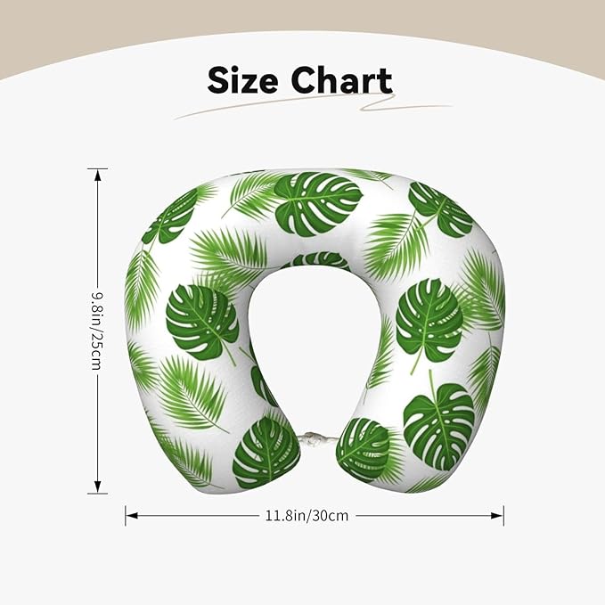 Neck Pillow Memory Foam Chin Cushion with Breathable Cover Tropical Leaf Green Banana Palm Leaves, Cute Airplane Car Pillows for Office Head Pain Relief