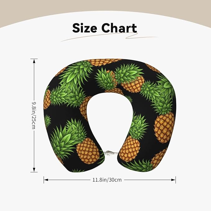 Breathable Neck Pillow for Sleeping Rest Nap Upside Down Pineapple, Airplanes/Car/Home Memory Foam Travel Cushion with Polyester Cover Washable for Women Men