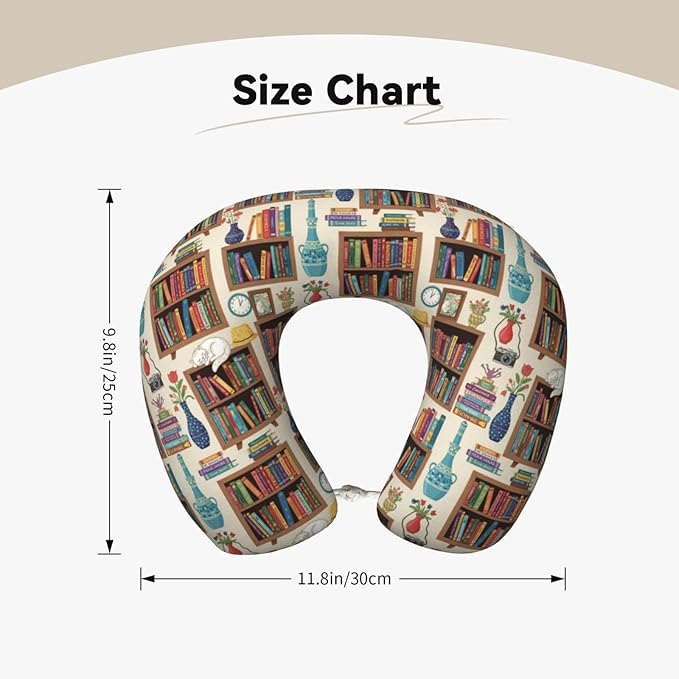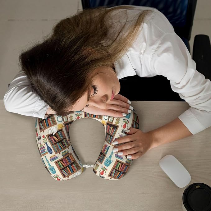 Travel Pillow Chin Neck Support, Comfortable Airplane Car Pillows for Rest, Memory Foam U Shaped Office Home Nap Sleeping Cushion Sleeping Cat Bookshelf Library