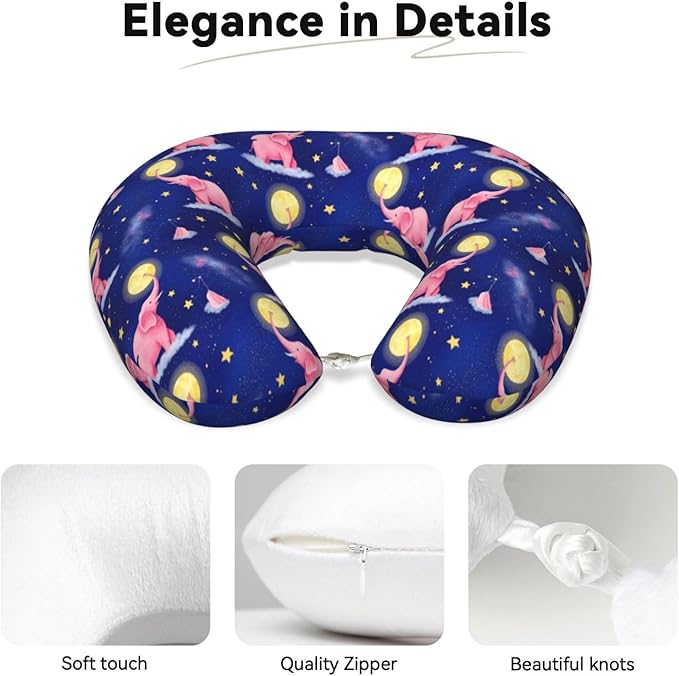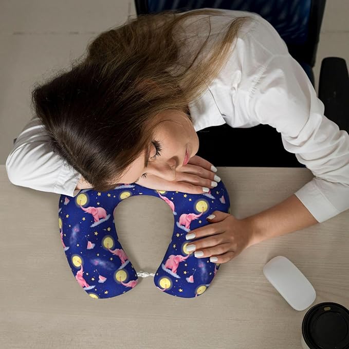 Comfortable Travel Pillow for Pain Relief Sleeping, Memory Foam Airplane Car Neck Pain Pillows Full Moon Rose Elephants, Funny Chin Head Support Cushion