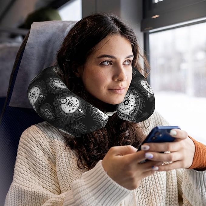 Neck Pillows for Travel Gothic Moon Eye Witchy Magic Spirit Board, Women and Men Airplane Car Pillow, Neck Support U Shaped Pillow for Rest Pain Relief Sleeping