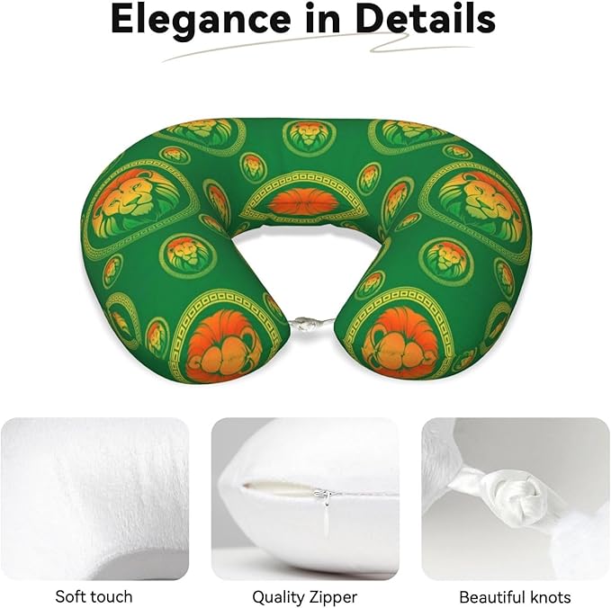 Support Neck Pillow for Youth Travel, Washable Airplane Chin Supporting and Relax U Shaped Pillows Rasta Lion Jamaican Reggae Flag Green