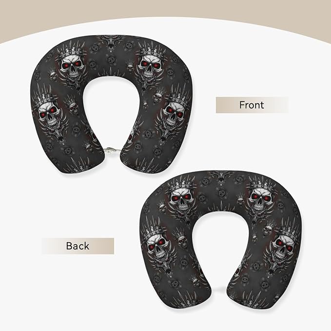 Breathable Neck Pillow for Sleeping Rest Nap King Cool Skull Dragon Tattoo Art, Airplanes/Car/Home Memory Foam Travel Cushion with Polyester Cover Washable for Women Men