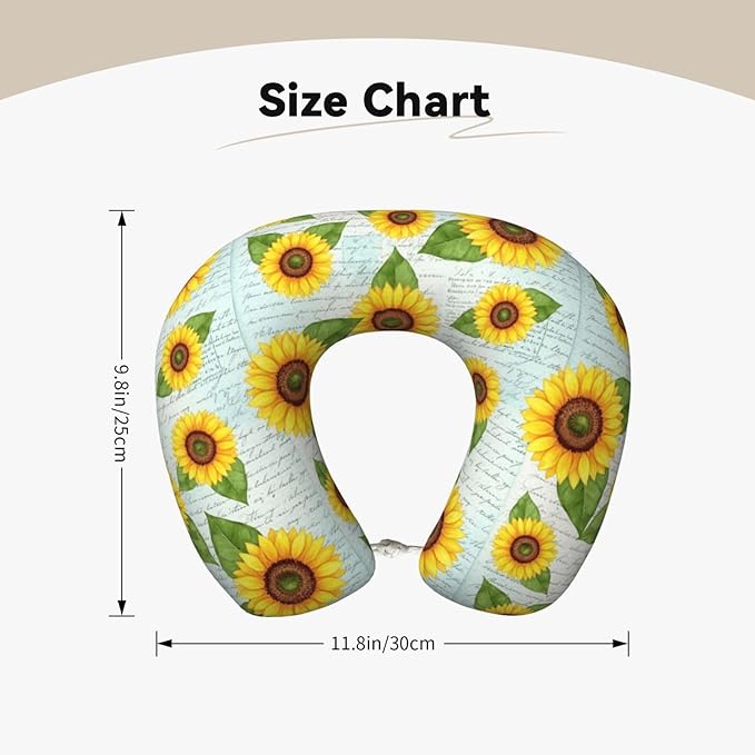 Funny Neck Pillow Support for Car Flight Rest Vintage Sunflower, Memory Foam U Shaped Decor Head Cushion for Home Outdoors Travel