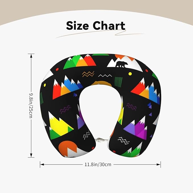 Comfortable Memory Foam Neck Pillow Colorful Mountain Bear Black, Travel U Shaped Airplane/Car/Flight Pillows with Removable Zipper Cover, Chin Head Neck Support Cushion