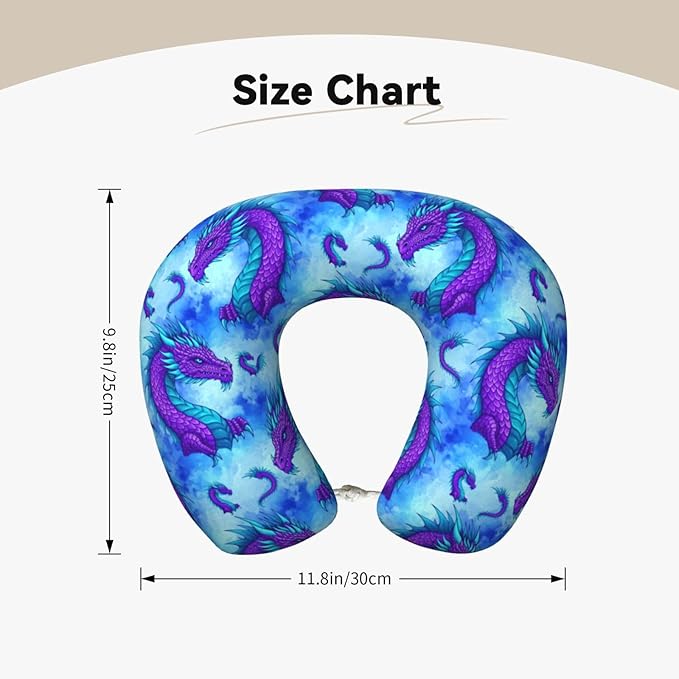 Memory Foam Airplane Pillow Purple Dragon for Car Chin Head Neck Supporting, U Shape Pillows Travel Cushion for Office, Nap Sleeping