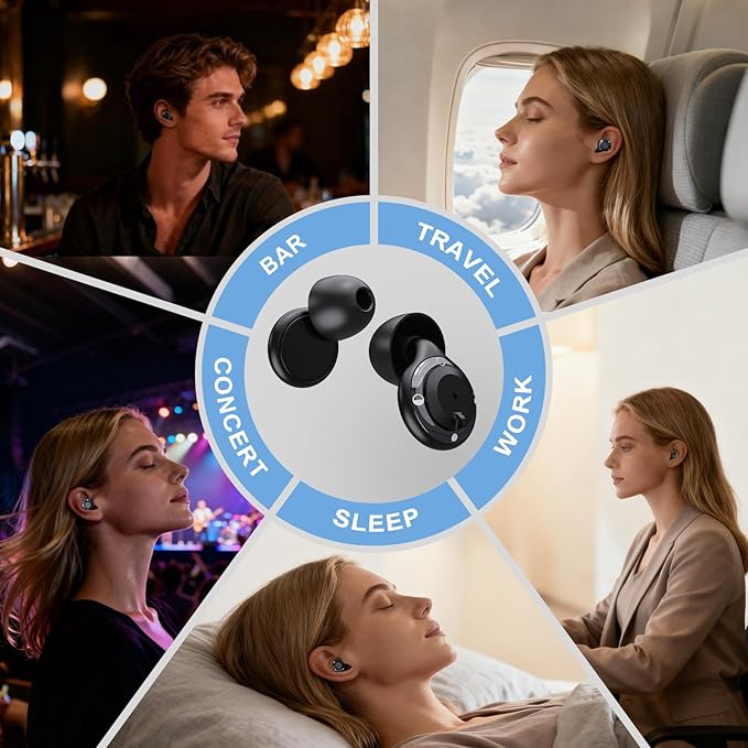 - 【All-Day Protection for Any Scenarios】 This sleep earbuds can block out snoring, office chatter, live music, or study distractions with adjustable noise reduction. Whether for sleep, work, travel, or relaxation, these earplugs adapt to your life style.