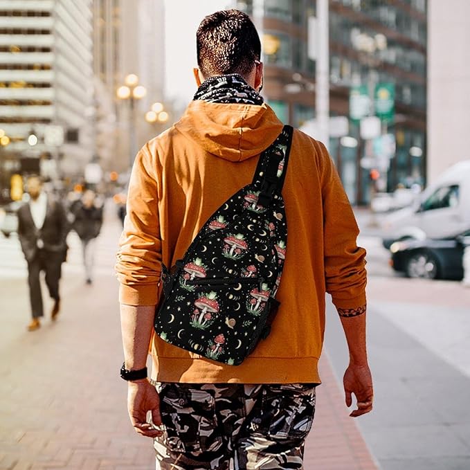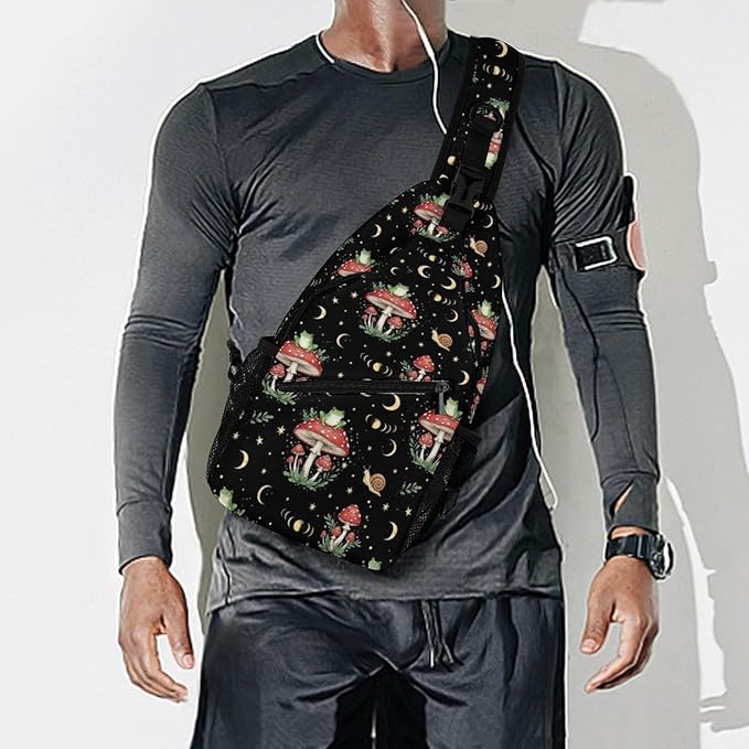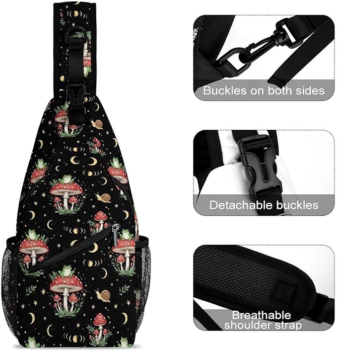 SWEET TANG Casual Sling Backpack for Women Chest Shoulder Crossbody Backpack, Gym Funny Sack, Satchel Travel Bag Outdoor Hiking Daypack Moon Frog Mushroom