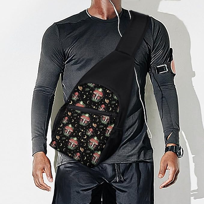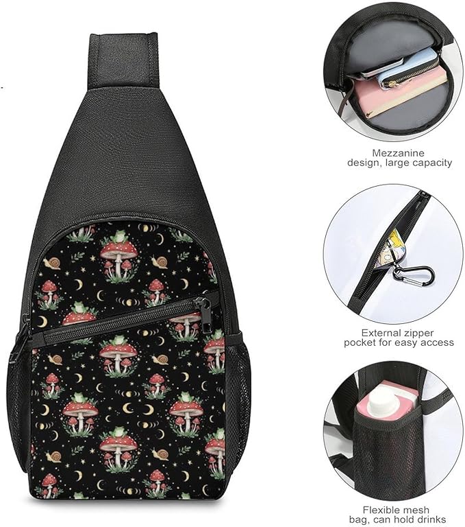 SWEET TANG Fashion Sling Backpack for Men Women, Lightweight Sling Shoulder Bag, Outdoor Chest Crossbody Bike Gym Runner Daypack with Adjustable Strap, Moon Frog Mushroom