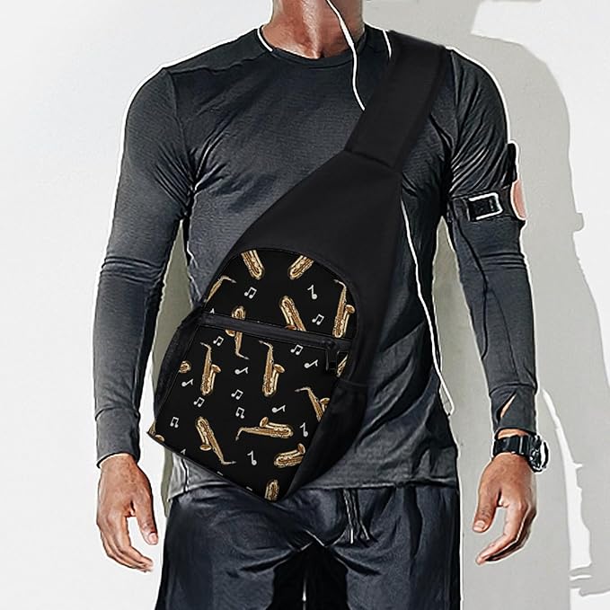 SWEET TANG Anti Theft Sling Chest Bag Shoulder Backpack Saxophone And Music Black Crossbody Bags Gym Sack, Polyester Daypack Lightweight for Men Women Travel Gym Sport Hiking