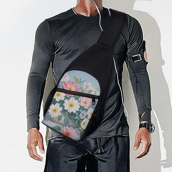 SWEET TANG Cool Sling Backpack for Men Women, Multipurpose Crossbody Shoulder Bag Shabby Chic Rose Patterns, Travel Hiking Zippered Daypack, Adjustable and Breathable