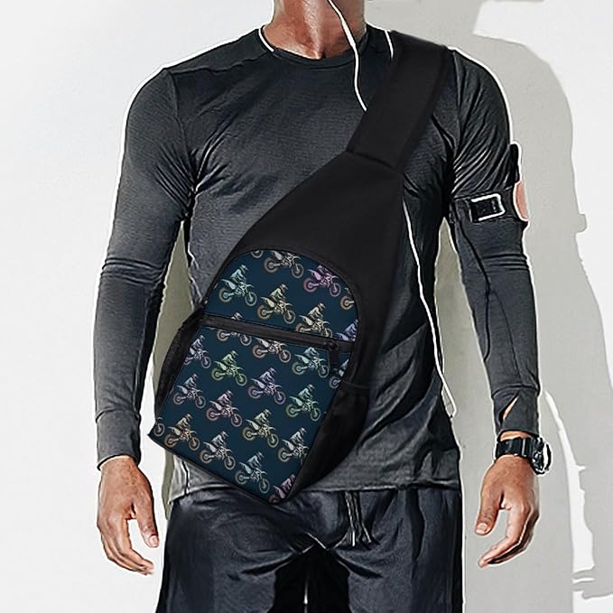 SWEET TANG Casual Sling Backpack Chest Shoulder Crossbody Backpacks, Unbalance Gym Funny Sack, Motocross Dirt Bike Black, Satchel Travel Bag Outdoor Hiking Daypack for Men Women