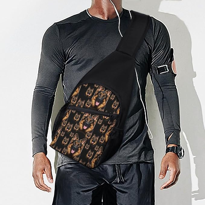 SWEET TANG Women Shoulder Chest Sling Bags Backpacks German Shepherd Black, Fashion Casual Pack Crossbody Bags Daypack Multipurpose for Travel Outdoors Running