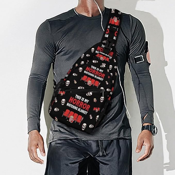 SWEET TANG Fashion Sling Backpack, Lightweight Sling Shoulder Bag, Outdoor Chest Crossbody Bike Gym Runner Daypack with Adjustable Strap for Men Women, Horror Movie Watching Blanket