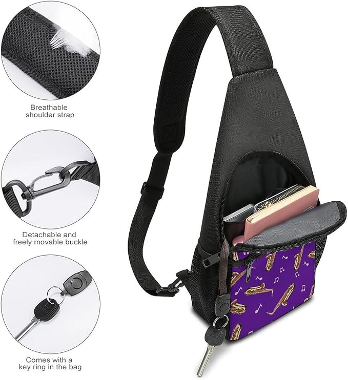 SWEET TANG Womens Fashion Gym Bags Anti Theft Crossbody Shoulder Chest Bag with Small Pocket, Multipurpose Daypack Bag for Cycling Traveling Hiking, Saxophone And Music Purple