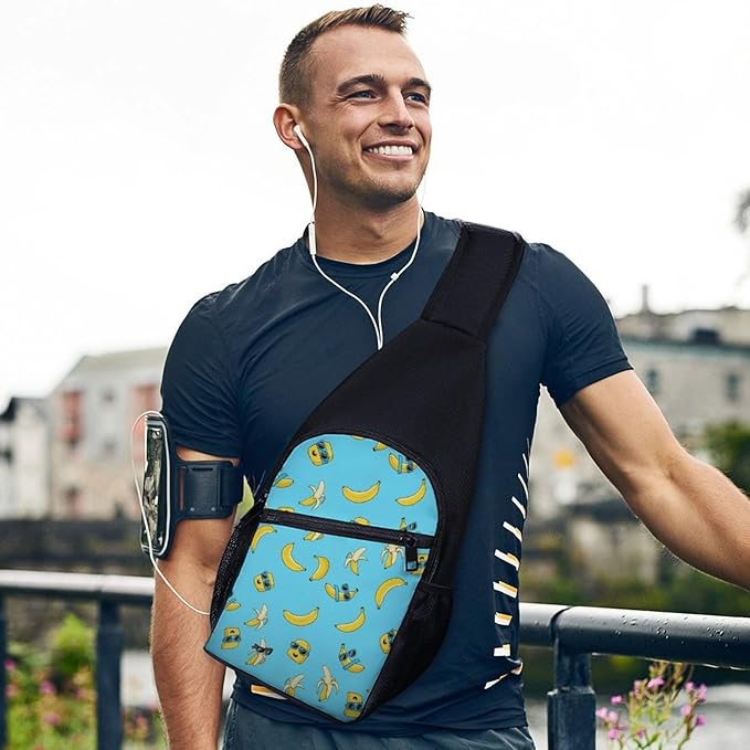 SWEET TANG Casual Sling Backpack for Women Chest Shoulder Crossbody Backpack, Gym Funny Sack, Satchel Travel Bag Outdoor Hiking Daypack Cute Banana