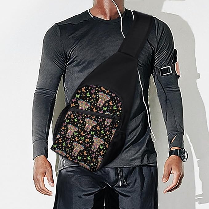 SWEET TANG Men's Crossbody Bag Anti Theft Shoulder Backpack, Funny and Chest Bags Elephant Butterfly Art for Fishing Cycling Hiking, Lightweight and Large Capacity