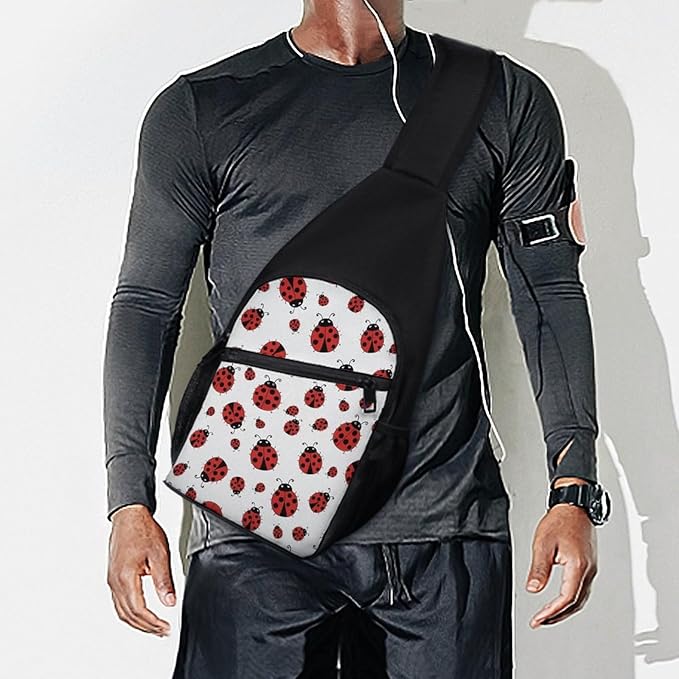 SWEET TANG Lightweight Sling Shoulder Backpack, Adjustable Gym Bags Red Ladybug White, Large Capacity Chest Cross Body Bag Daypack, Outdoor Multipurpose Bag