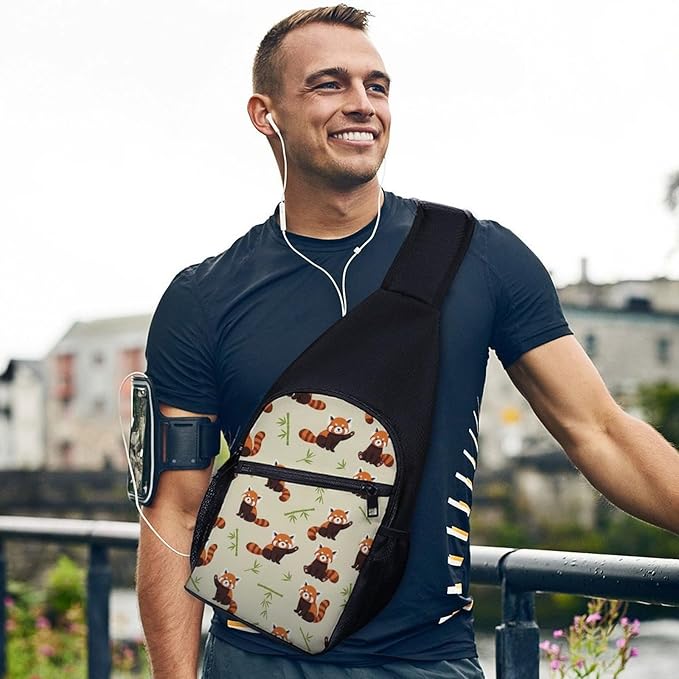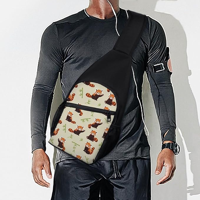 SWEET TANG Elegant Chest Cross Body Bag Red Panda Art Sling Shoulder Backpack for Women, Adjustable and Comfortable Gym Sack, Anti Theft Cycling Traveling Hiking Daypack