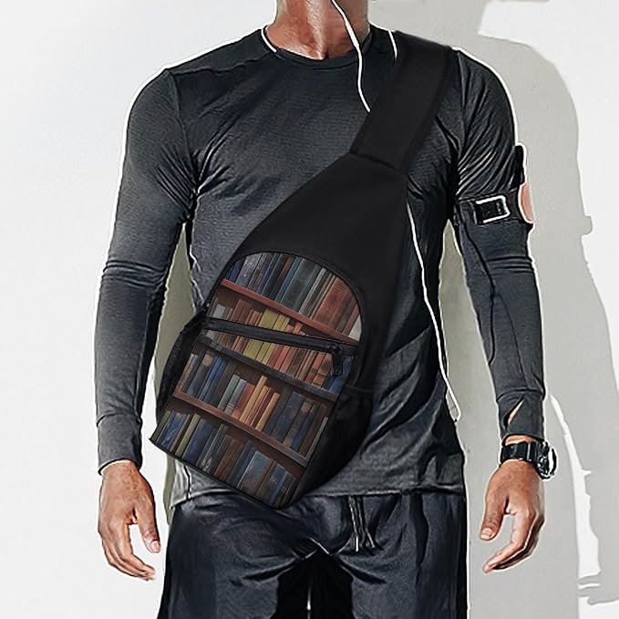 SWEET TANG Women Shoulder Chest Sling Bags Backpacks Vintage Library Bookshelf Bookcase, Fashion Casual Pack Crossbody Bags Daypack Multipurpose for Travel Outdoors Running