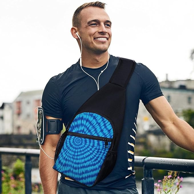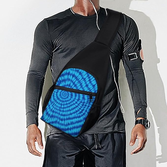 SWEET TANG Womens Fashion Gym Bags Anti Theft Crossbody Shoulder Chest Bag with Small Pocket, Multipurpose Daypack Bag for Cycling Traveling Hiking, Trippy Blue Tie Dye