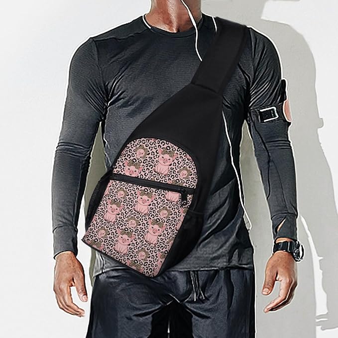 SWEET TANG Sling Backpack for Women, Cute Multipurpose Crossbody Shoulder Bag, Comfortable and Lightweight Adjustable Travel Hiking Daypack Cute Pig Leopard Print Pink