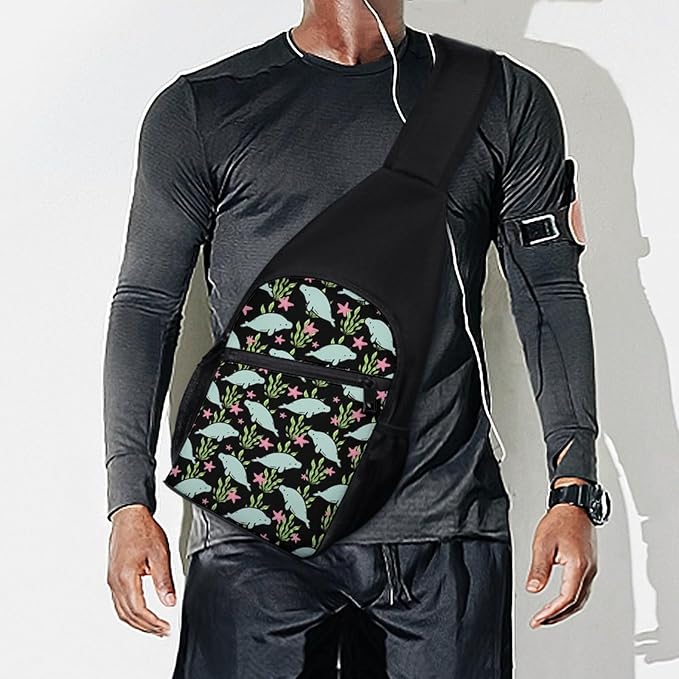 SWEET TANG Casual Sling Backpack for Women Chest Shoulder Crossbody Backpack, Gym Funny Sack, Satchel Travel Bag Outdoor Hiking Daypack Manatee Animals