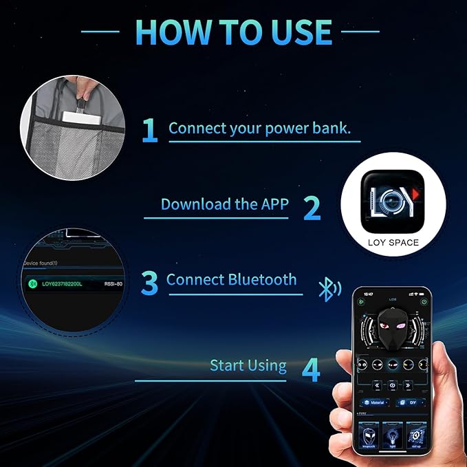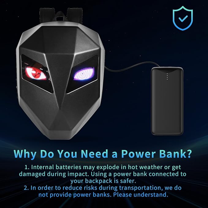 - ๐ Easy Setup with Universal Power Compatibility Lighting up your backpack is simple: just connect it to any standard power bank (not included) via the built-in USB port. The universal compatibility means you can easily use a portable charger you already own to bring your vibrant designs to life.