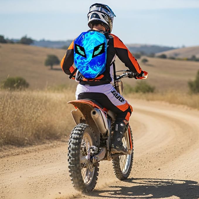 Motorcycle Backpack with LED Eyes, DIY Laptop Backpack for Riding, Cycling, Travel, Waterproof Hard Case Motorbike Bag, Large Size 19" SBlue
