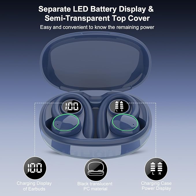 - Comfortable To Wear, IP7 Waterproof: With flexible and soft ear hooks design, the sport earbuds fit your ears perfectly, allowing you to keep wearing comfortably even during intense exercise without worrying about falling off. In addition, this bluetooth earbuds can also resist the invasion of sweat and rain, making it an ideal choice for sports, workout, running, exercise and other activities