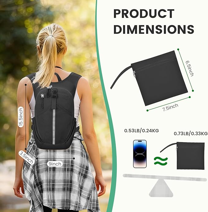 Small Hiking Backpack 10L - Lightweight Packable Foldable Backpack for Travel Camping Outdoor Commute, Compact Rucksack for Women Men(Black)